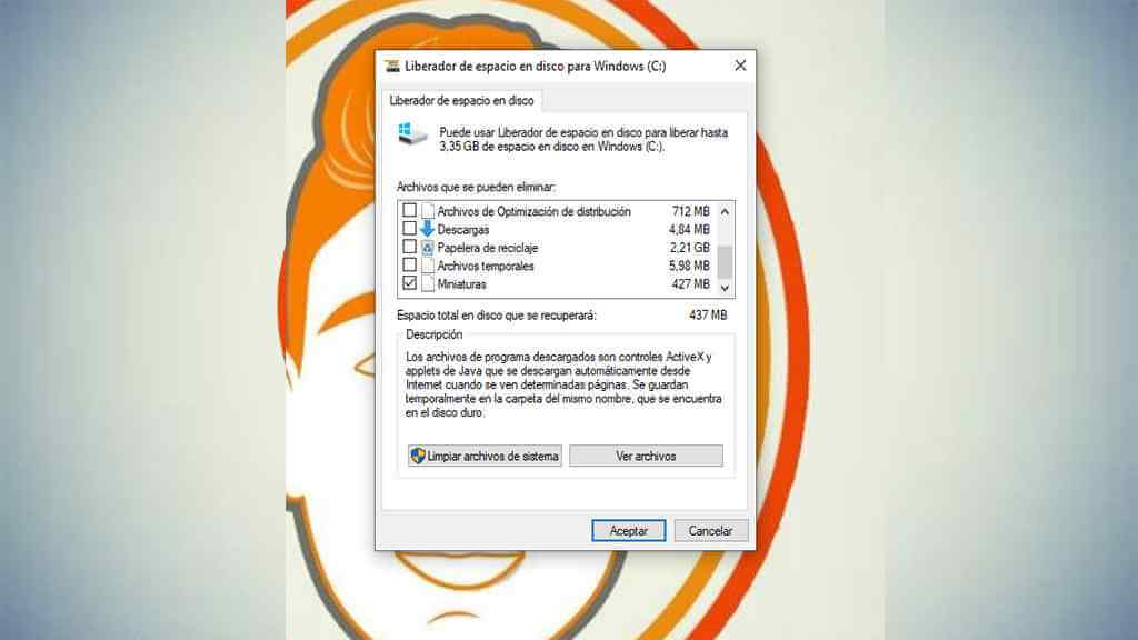 Liberador de espacio en disco duro también podemos borrar los archivos que  se acumulan en nuestro disco duro con el “liberador de espacio” con ello podemos borrar los archivos de programa descargados, archivos temporales, memoria caché, entre otros archivos que podemos ir seleccionando.